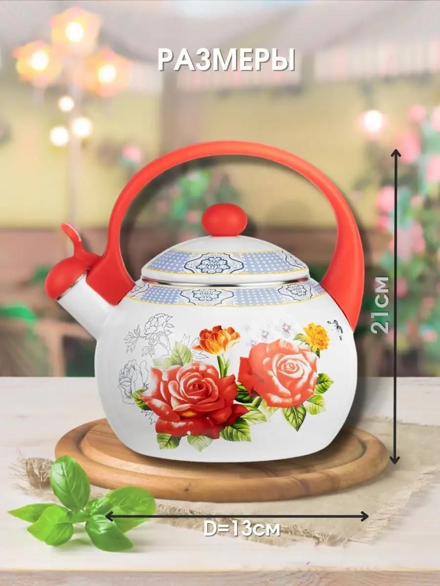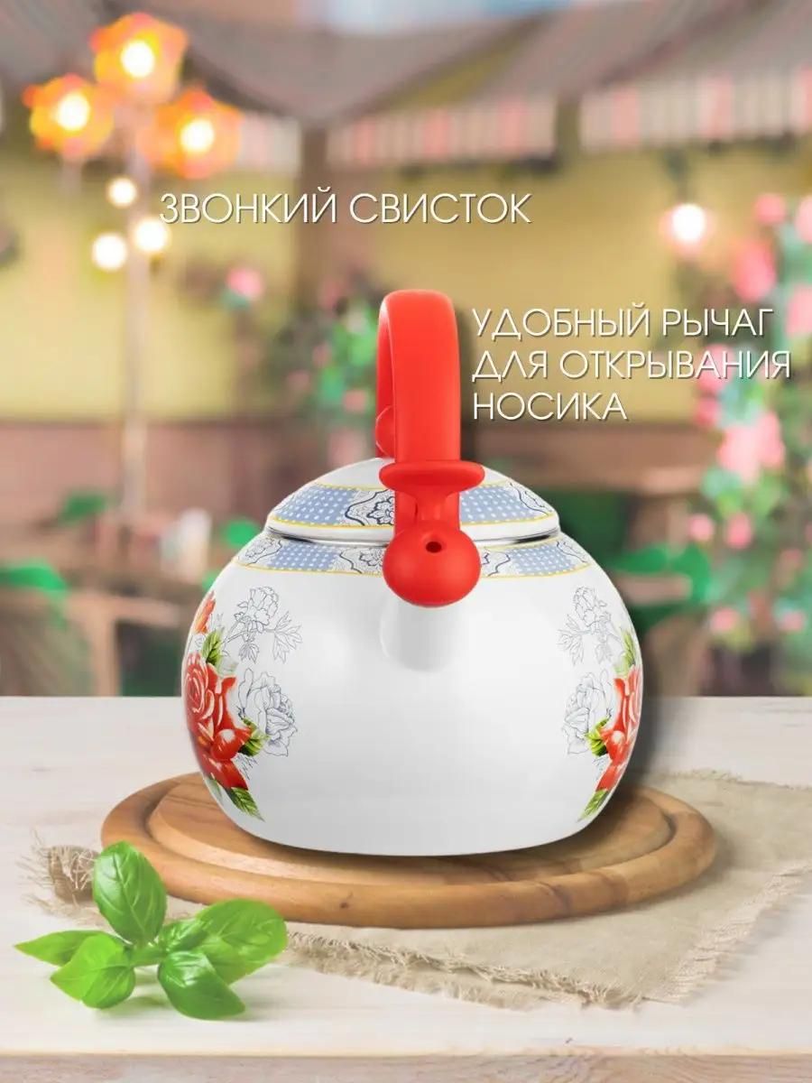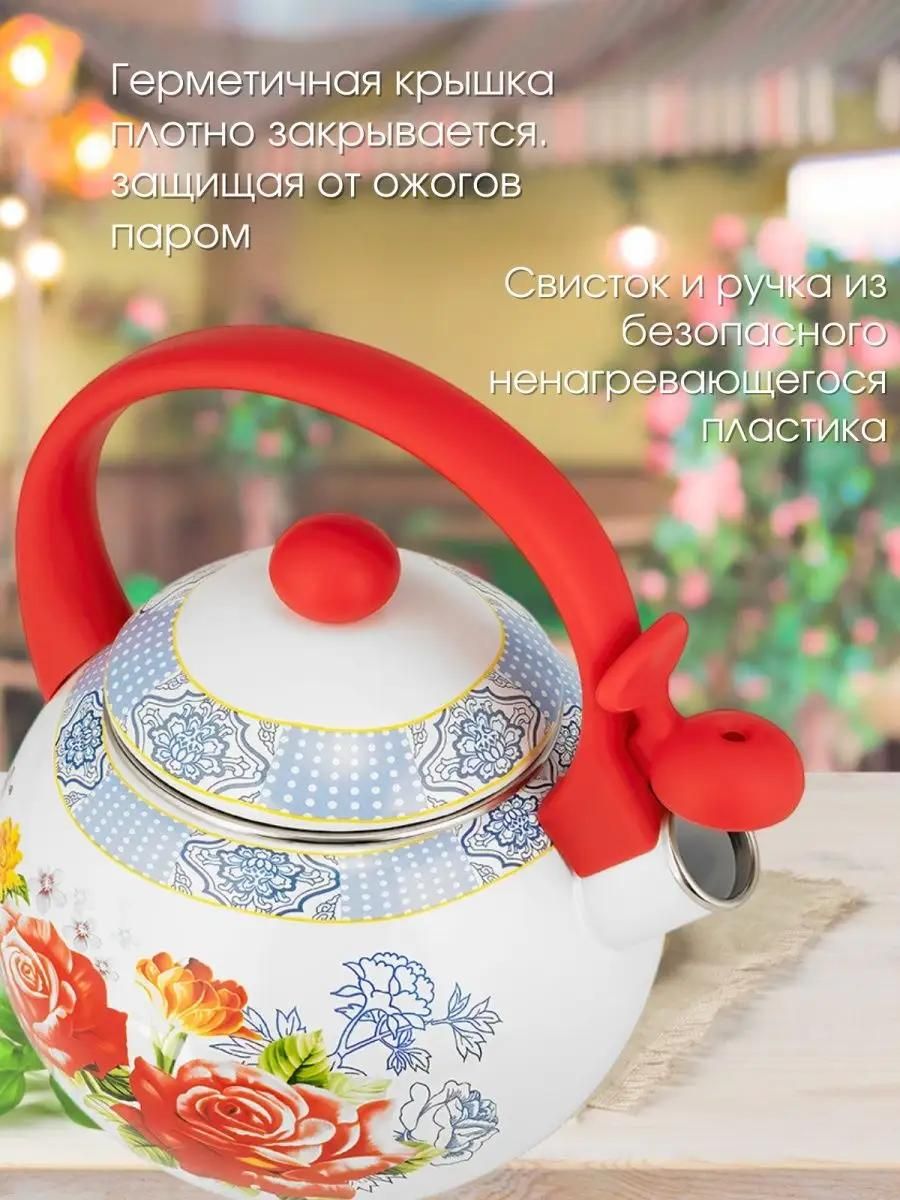Эмалированный чайник со свистком для газовой и индукционной, керамической и электрической плиты емкостью 2, 2 литра.