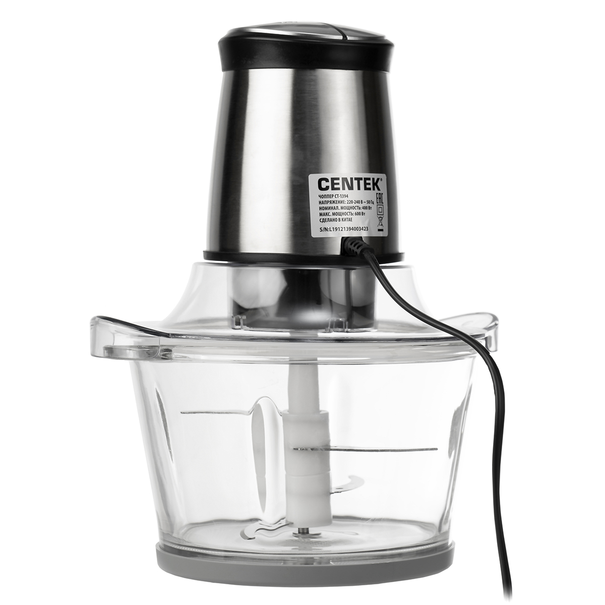 Чоппер Centek-1394 600Вт, стеклянная чаша 1,5л, 2 скорости,