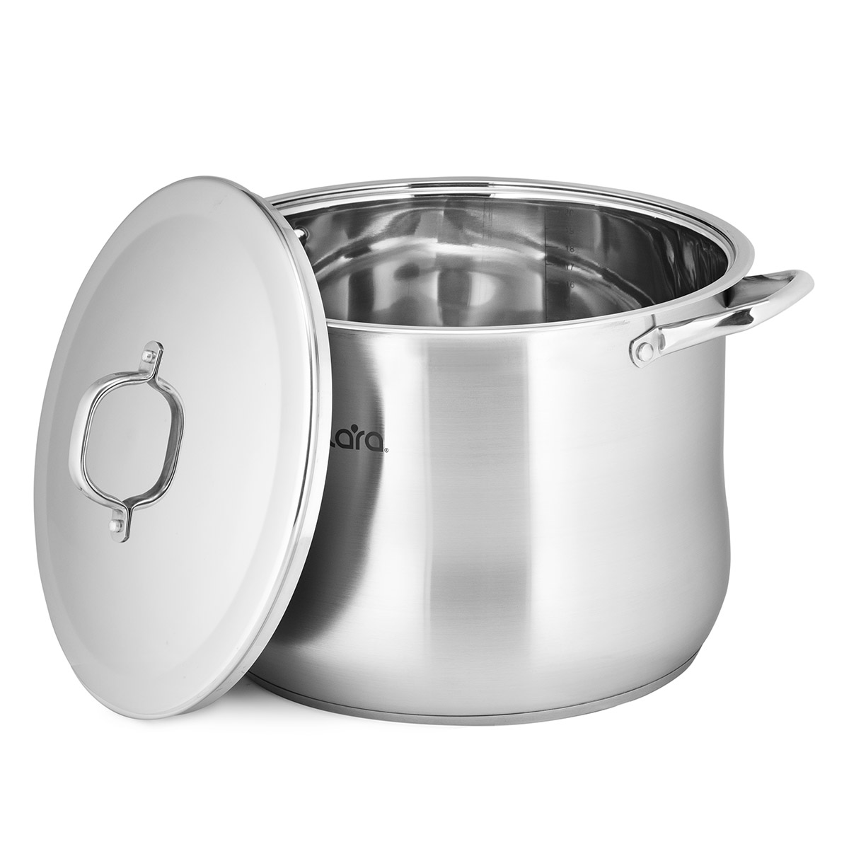 Если у вас щедрый урожай и его необходимо быстро переработать, кастрюли LARA серии “BIG SIZE” помогут в этом. Практичные кастрюли из нержавеющей стали больших объёмов, в них можно приготовить варенья, компоты, узвары – всё, что душе угодно! Для кастрюлей объемом до 11 литров предусмотрена прозрачная стеклянная крышка с паровыпуском, а свыше 11 литров крышка из нержавеющей стали с зеркальной полировкой. Ручки на кастрюле и крышке закреплены надёжными заклёпками. Обод из нержавеющей стали практичной G-формы. 5-слойное капсулированное индукционное дно подходит для всех типов плит. Удобная мерная шкала объёмов.