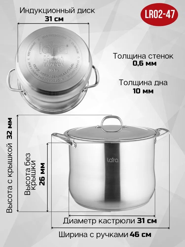 Кастрюля LARA 02-47 21,8 л., 34 см