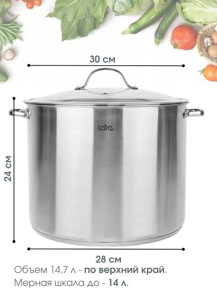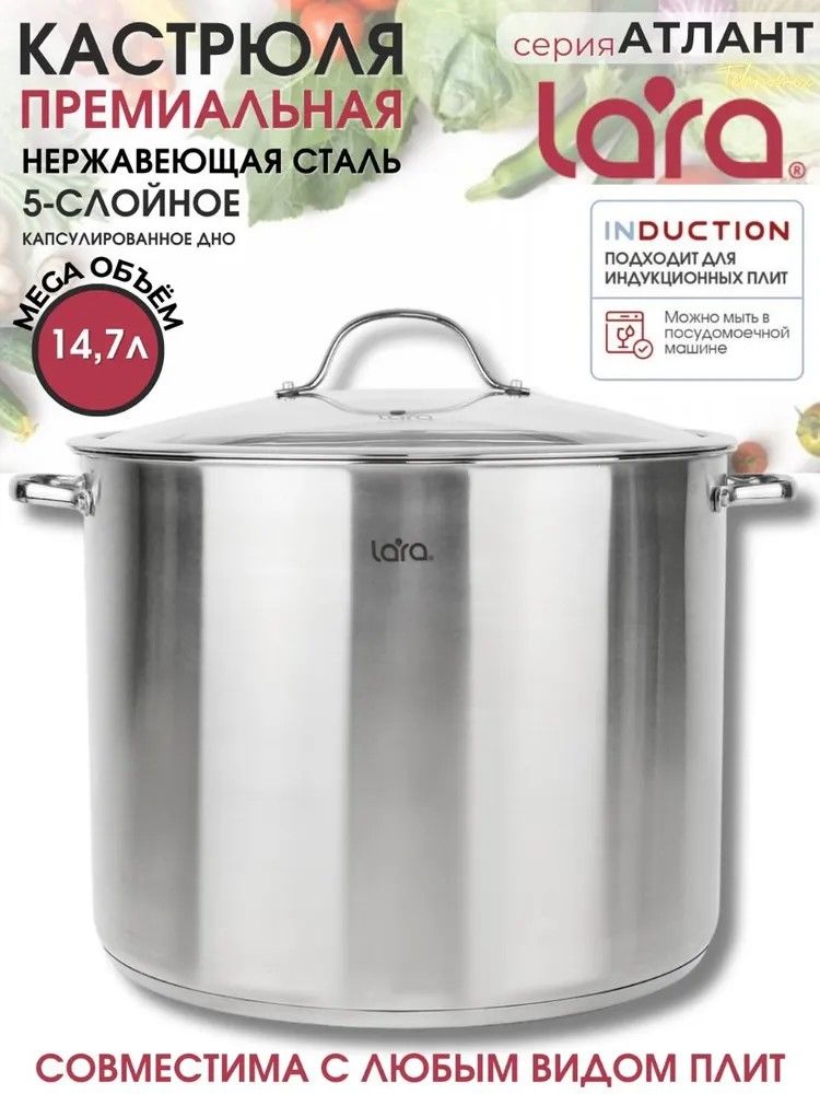 Кастрюля LARA АТЛАНТ 02-900 14,7 л.,индукция, стеклянная крышка