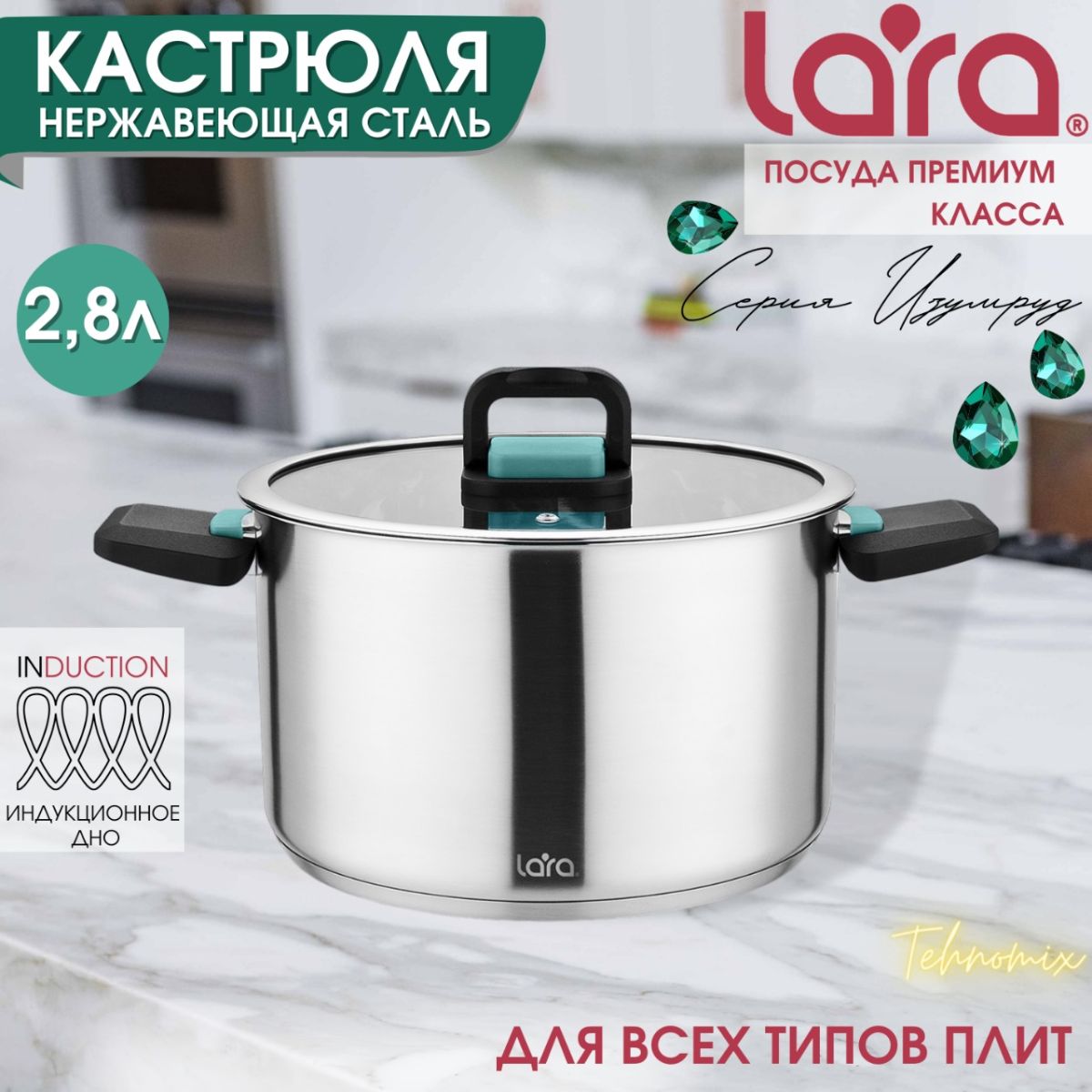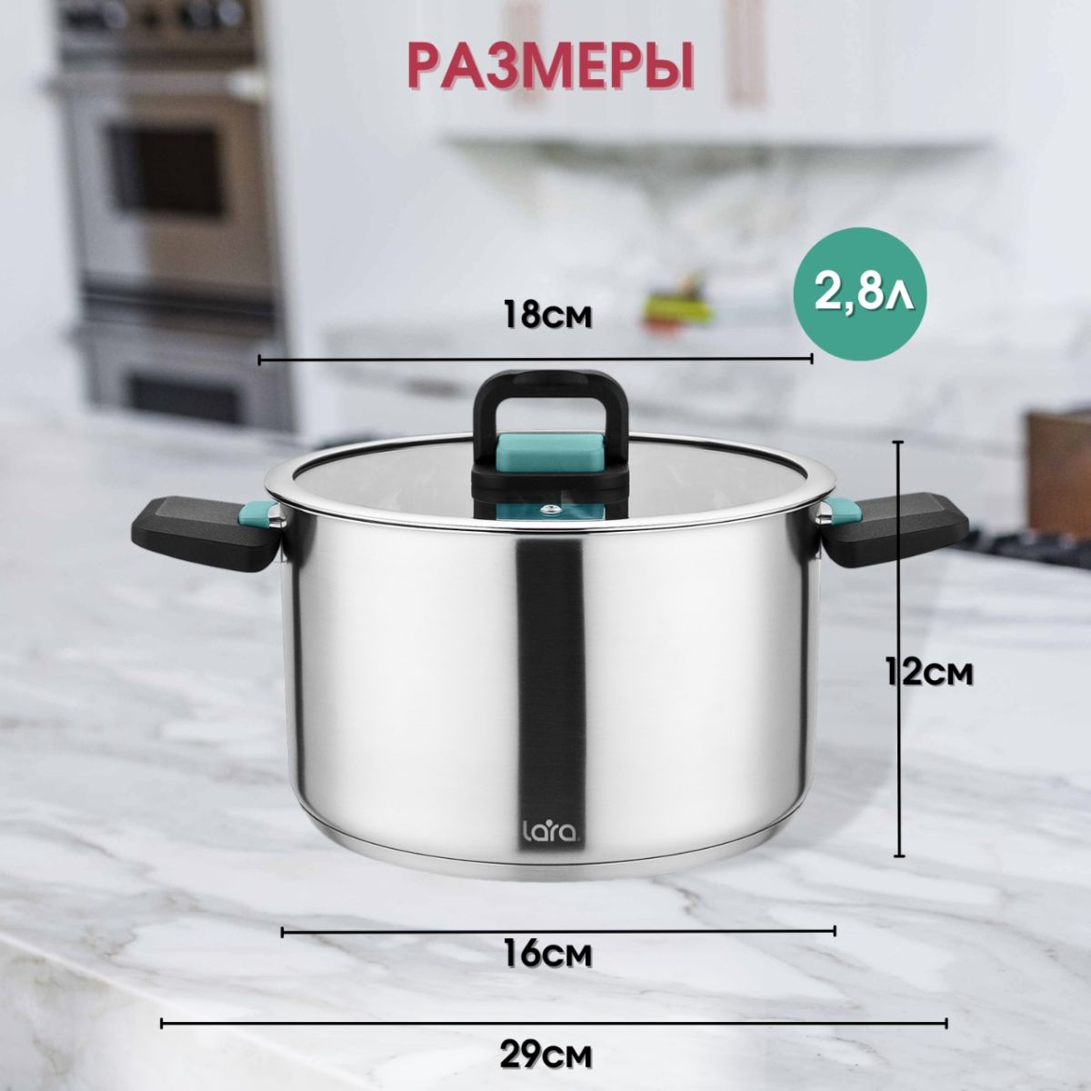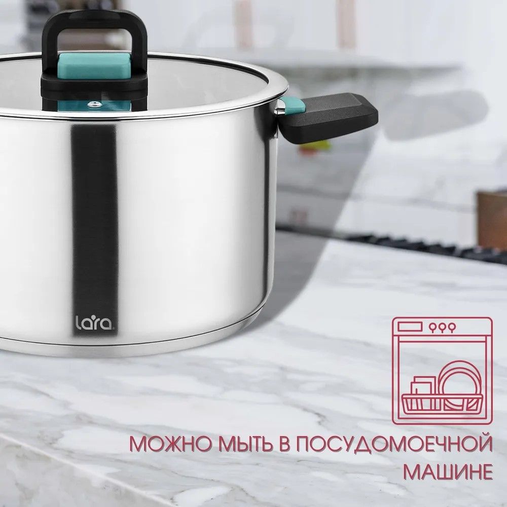 Кастрюля LARA АФИНА 02-268 3,9л, капсулированное индукционное дно, стеклянная крышка