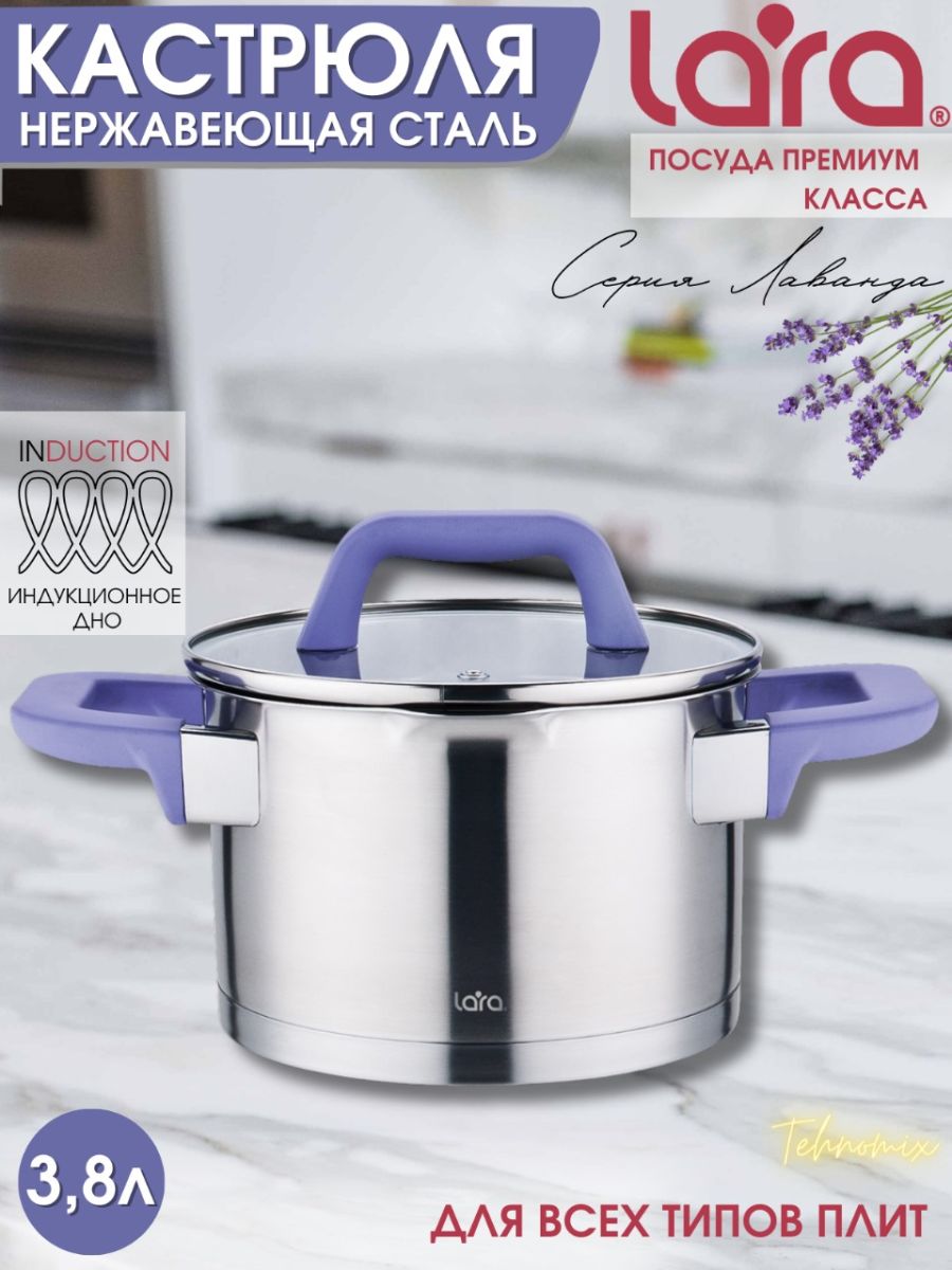 Кастрюля LARA ЛАВАНДА 02-253 ЛИК 3,8л