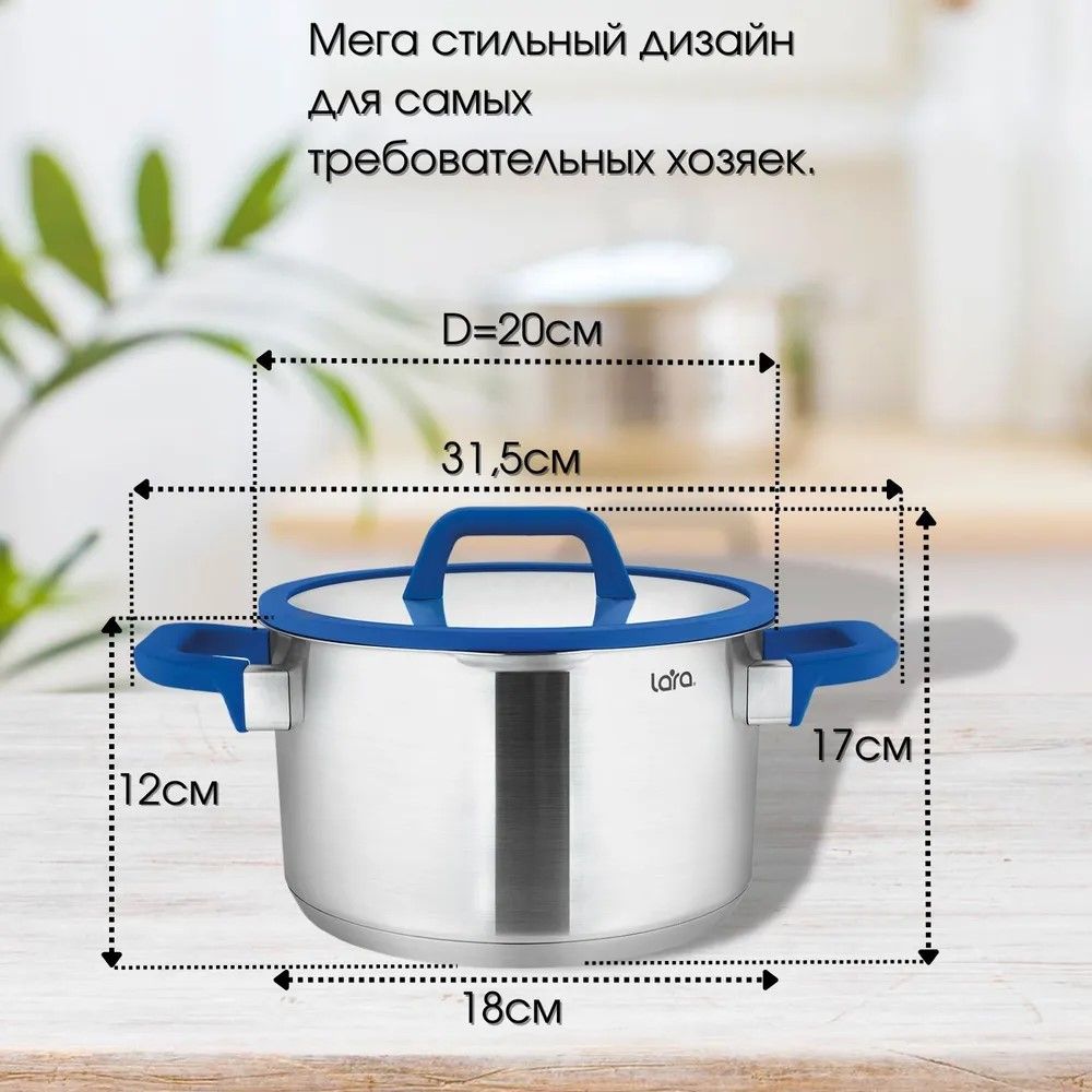 Кастрюля LARA САПФИР 02-792 3,5л, 20 см