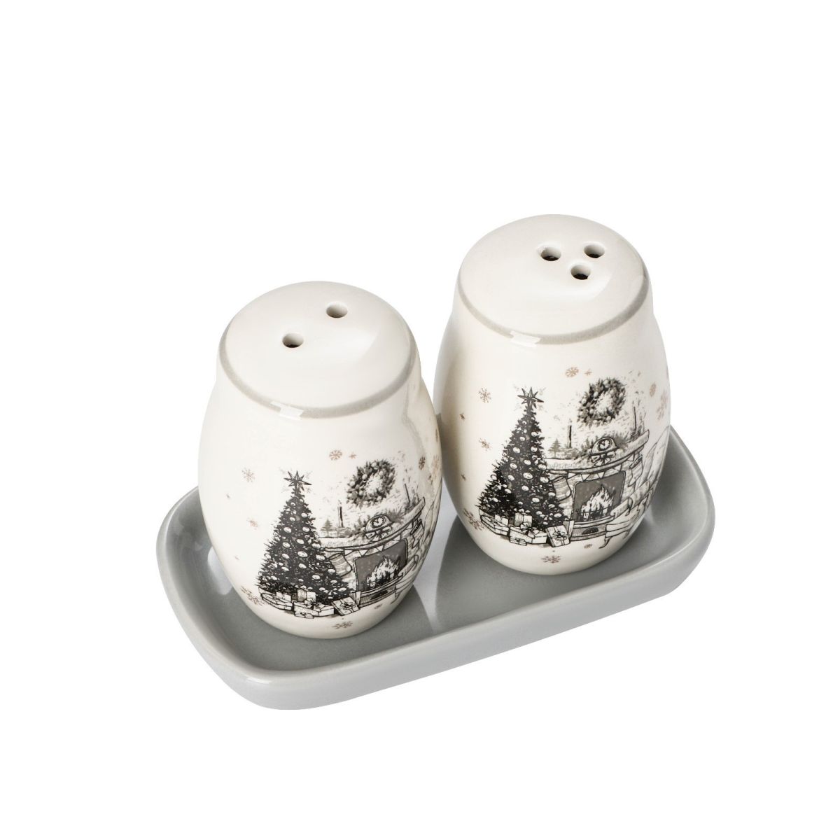 Набор для специй изготовлен из качественного доломита и украшен красивым новогодним рисунком. Подойдет для соли,перца и других сухих специй. Несмотря на свой праздничный внешний вид, набор рассчитан на ежедневное использование.