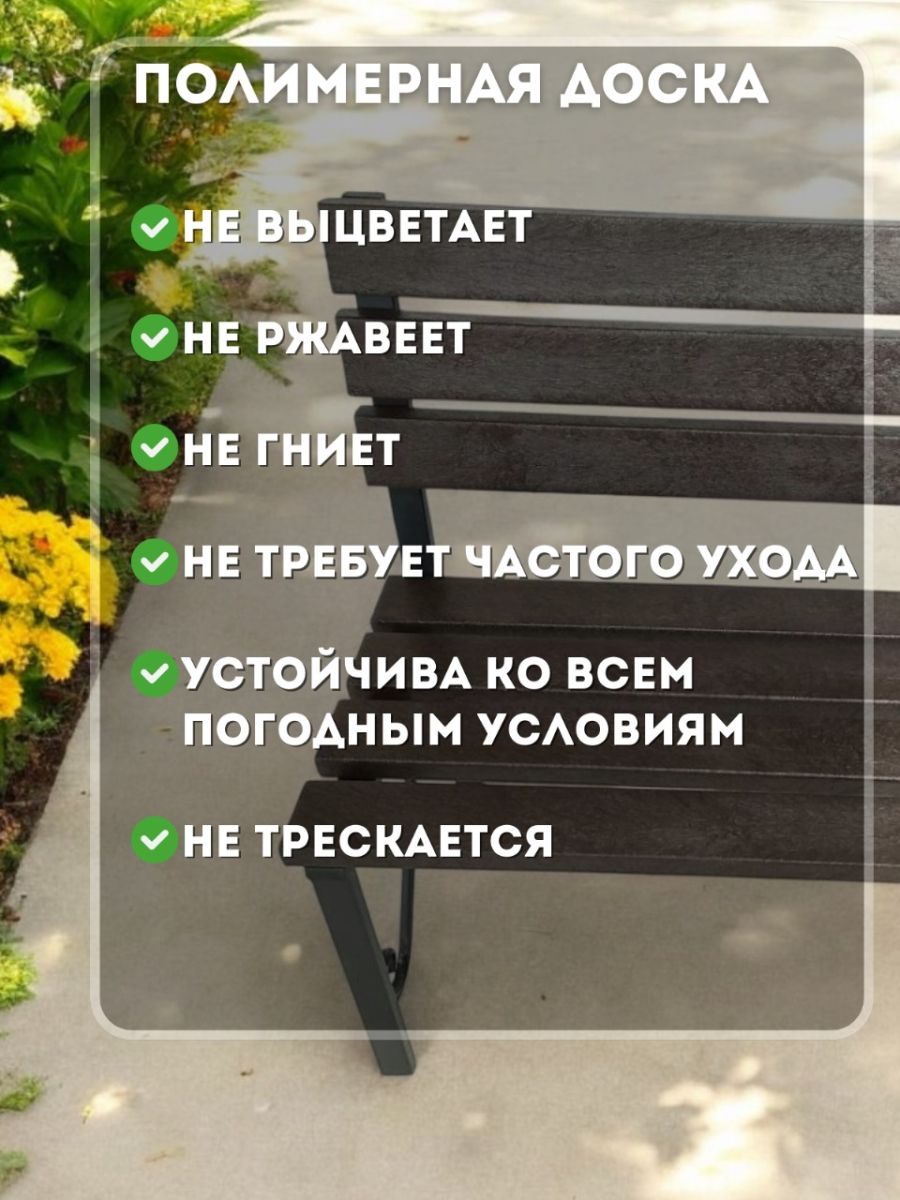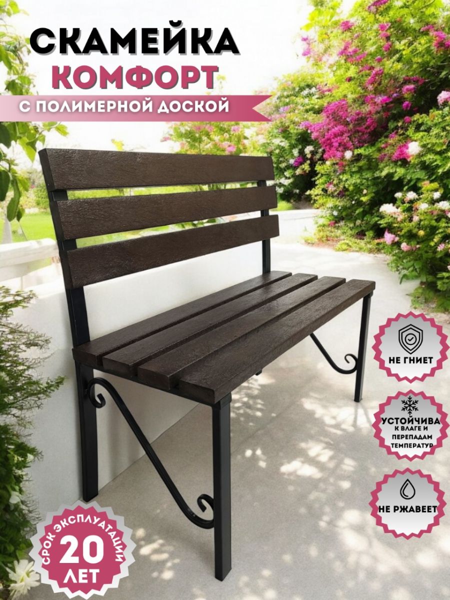 Скамейка "Комфорт" изготовлена из полимерной доски и металлического каркаса. Прекрасно сочетается с современной мебелью и интерьером, подходит для дома и офиса. Каркас скамейки разборный, выполнен из металлического профиля 40х20мм. Можно использовать в помещении - прихожей, на балконе, а так же в кафе, ресторане или в школах.