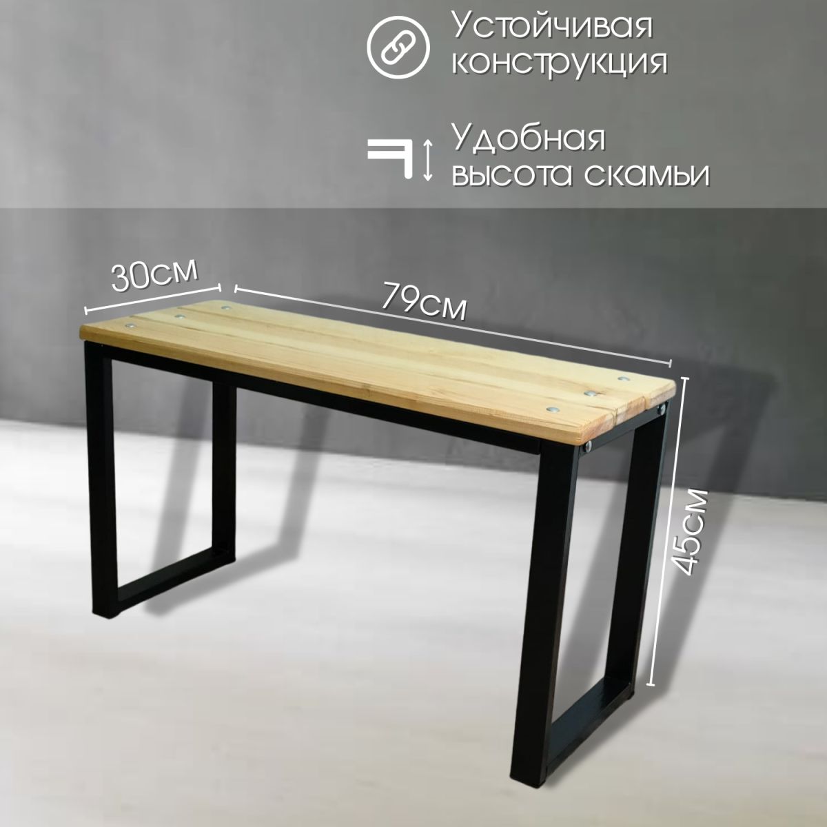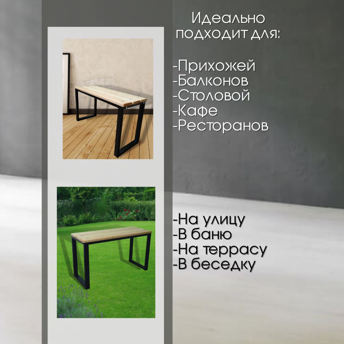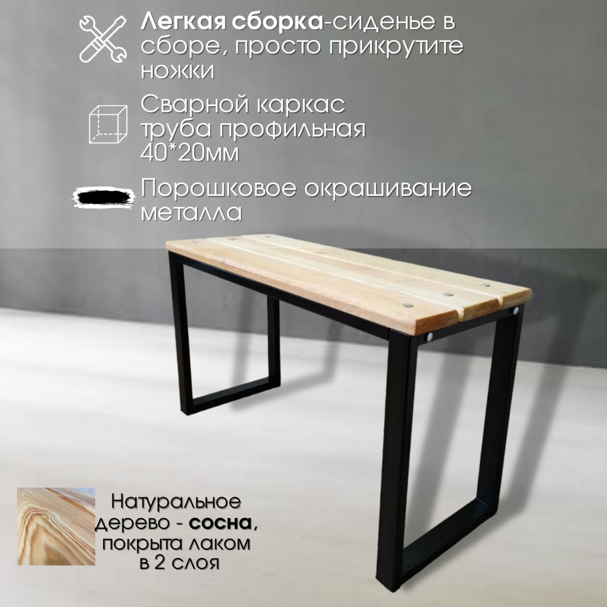 Скамейка - лавка в стиле лофт из натурального дерева и металлического каркаса. Прекрасно сочетается с современной мебелью и интерьером, подходит для дома и офиса. Каркас скамейки разборный, выполнен из металлического профиля, окрашен чёрной порошковой краской. Можно использовать в помещении - прихожей, на балконе, а так же в кафе, ресторане или в школах. Дерево-сосна отшлифовано и окрашено прозрачным лаком в 2 слоя, надежно защищено от воздействия влаги, ультрафиолета и плесени. Лавочка металлическая доставляется в разобранном виде, легкая сборка- сиденье в сборе, прикрутить только ножки. Скамейка уличная прекрасно переносит влажные погодные условия, можно использовать в саду и на даче. Лавка в баню или сауну прекрасно сочетается с натуральным деревом.