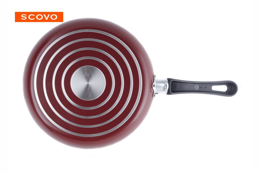 Вы любите сочетать во всем практичность и стиль? Со сковородой Scovo Expert это легко! Винный оттенок превосходно подойдёт к любому кухонному интерьеру: как светлому, так и темному, а широта линейки позволит выбрать нужный размер изделия для приготовления того или иного блюда (от 20 до 28 см). Ароматный омлет с вялеными томатами и песто на завтрак; хорошо прожаренный бекон для теплого салата на обед или пряное азу на ужин – нет такой задачи, с которой не справился бы наш Expert!