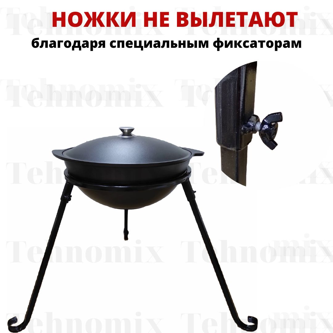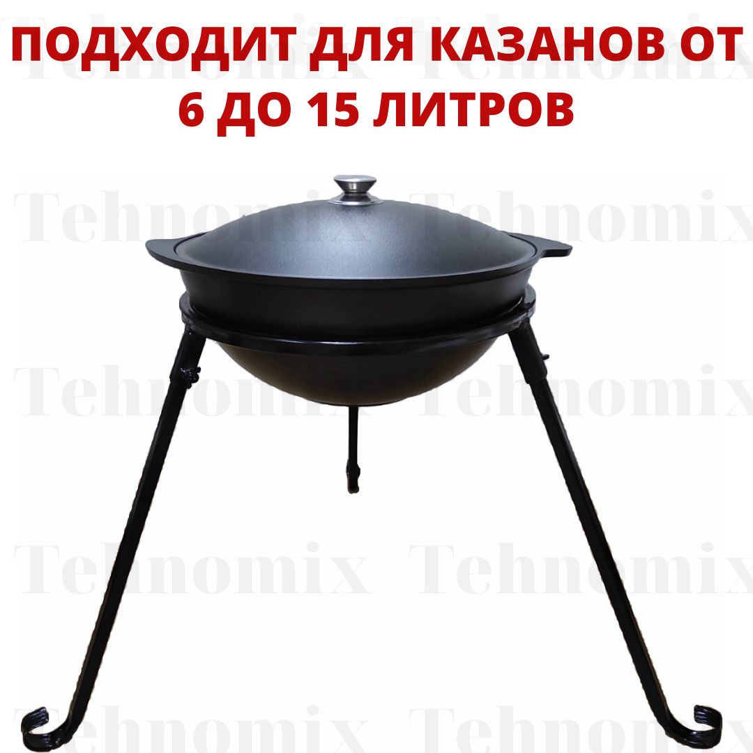 Подставка для казана предназначена для чугунных и алюминиевых казанов. Подставка на 35 см подходит для посуды от 6 до 15 литров. Внутренний диаметр кольца - 35 см, внешний -38 см. Благодаря разборной конструкции и небольшому весу, металлическую подставку под казан удобно брать с собой. Она не займёт много места при транспортировке. Подказанник состоит из основы - кольца и трех съемных ножек.Тренога для костра оснащена специальными фиксаторами, благодаря которым ножки надежно крепятся к кольцу. Треногу для казана в собранном виде можно переносить с места на место и не бояться, что ножки выпадут. Подставка подвергается окрашиванию порошковой краской и запекается при максимально высокой температуре. Поставляется в индивидуальной упаковке.Это отличный подарок любителю активного отдыха на природе, рыбаку, туристу. Такая тренога станет незаменимым атрибутом вашего отдыха на даче или пикнике.