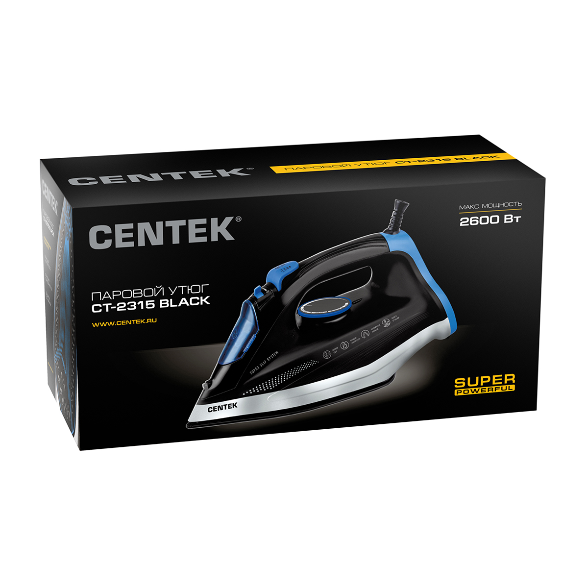 Утюг Centek CT-2315 обеспечивает простое и эффективное глажение: большое количество пара разглаживает жесткие складки, подошва с керамическим покрытием обеспечивает превосходное скольжение на любых тканях, а функция очистки от накипи повышает надежность прибора. Эффективное разглаживание складок благодаря мощному паровому удару. С утюгом Centek CT-2315 становится не только невероятно легко гладить одежду, но также не нужно волноваться, что её можно испортить или перегреть. Процесс глажки одежды становится невероятно простым и безопасным. Благодаря эргономично сделанной удобной ручке утюга вы меньше устанете. Узкий носик утюга прекрасно справится с разглаживанием труднодоступных мест возле пуговиц и мелких деталей. А его привлекательный дизайн поднимет вам настроение.